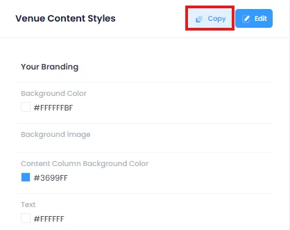 Go to the Settings tab and find Venue Content Styles. Click the Copy button.