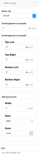 5. Dostosuj ustawienia przycisku i dodaj Link